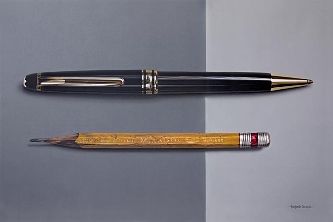 El fondo representa el pensamiento. El lado derecho simboliza el bien, lo bueno, lo mejor. La parte izquierda del fondo, abarca más espacio simbolizando la mayor facilidad para ver las cosas desde el lado negativo, que es donde el mendigo (lápiz) centra sus pensamientos, sentimientos y acciones. El príncipe (bolígrafo), por el contrario, dirige sus acciones, pensamientos y objetivos hacia el lado positivo, lo cual lo sitúa en la parte alta del libro de la vida. Ambos conviven en el mismo universo; la diferencia es la orientación de cada uno.